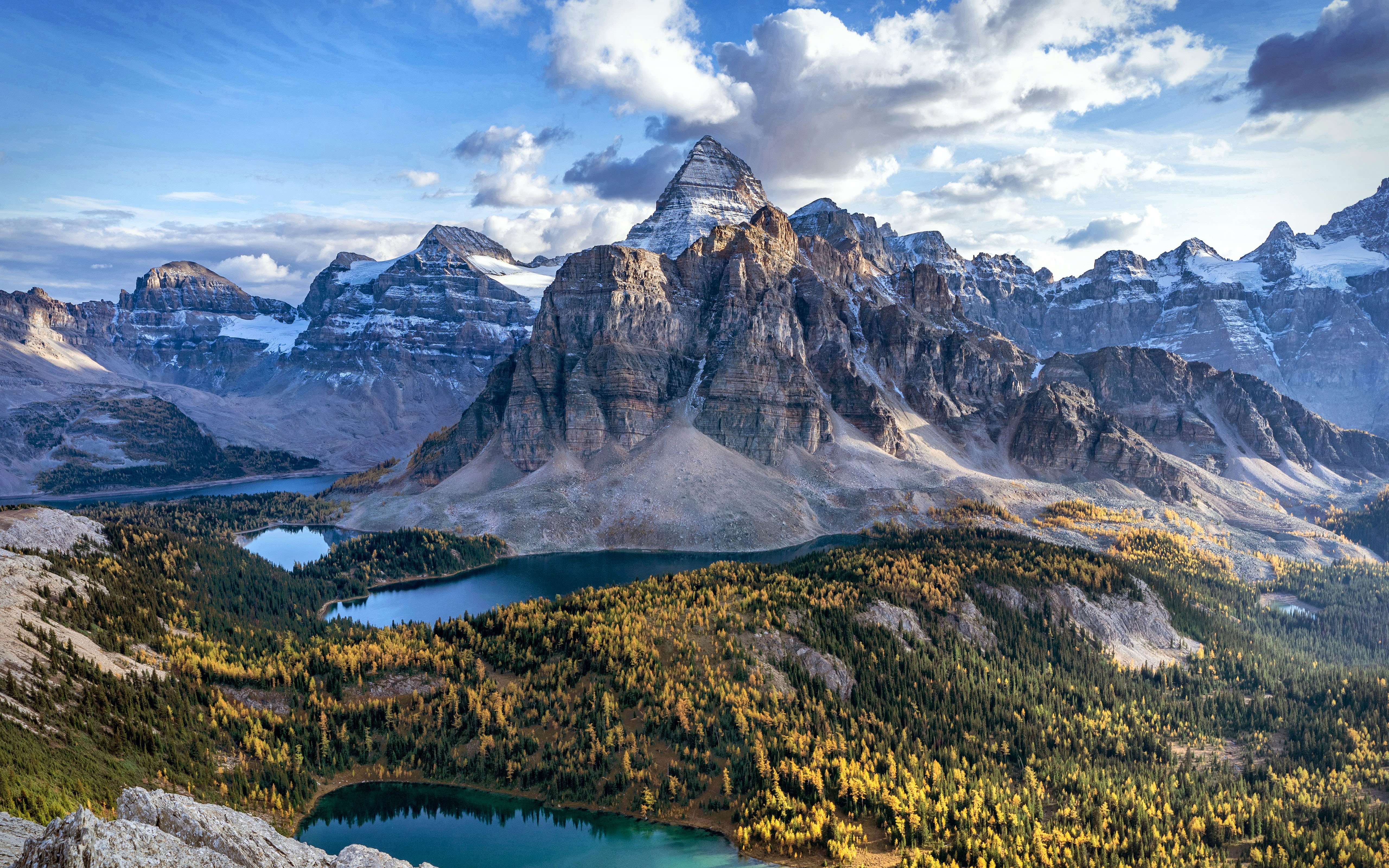 mountains_391Mount Assiniboine, also known as Assiniboine Mountain, is a pyramidal peak mountain on the Great Divide, on the British Columbia/Alberta border in Canada. At 3,618 m (11,870 ft), it is the highest peak in the Southern Continental Ranges of the Canad