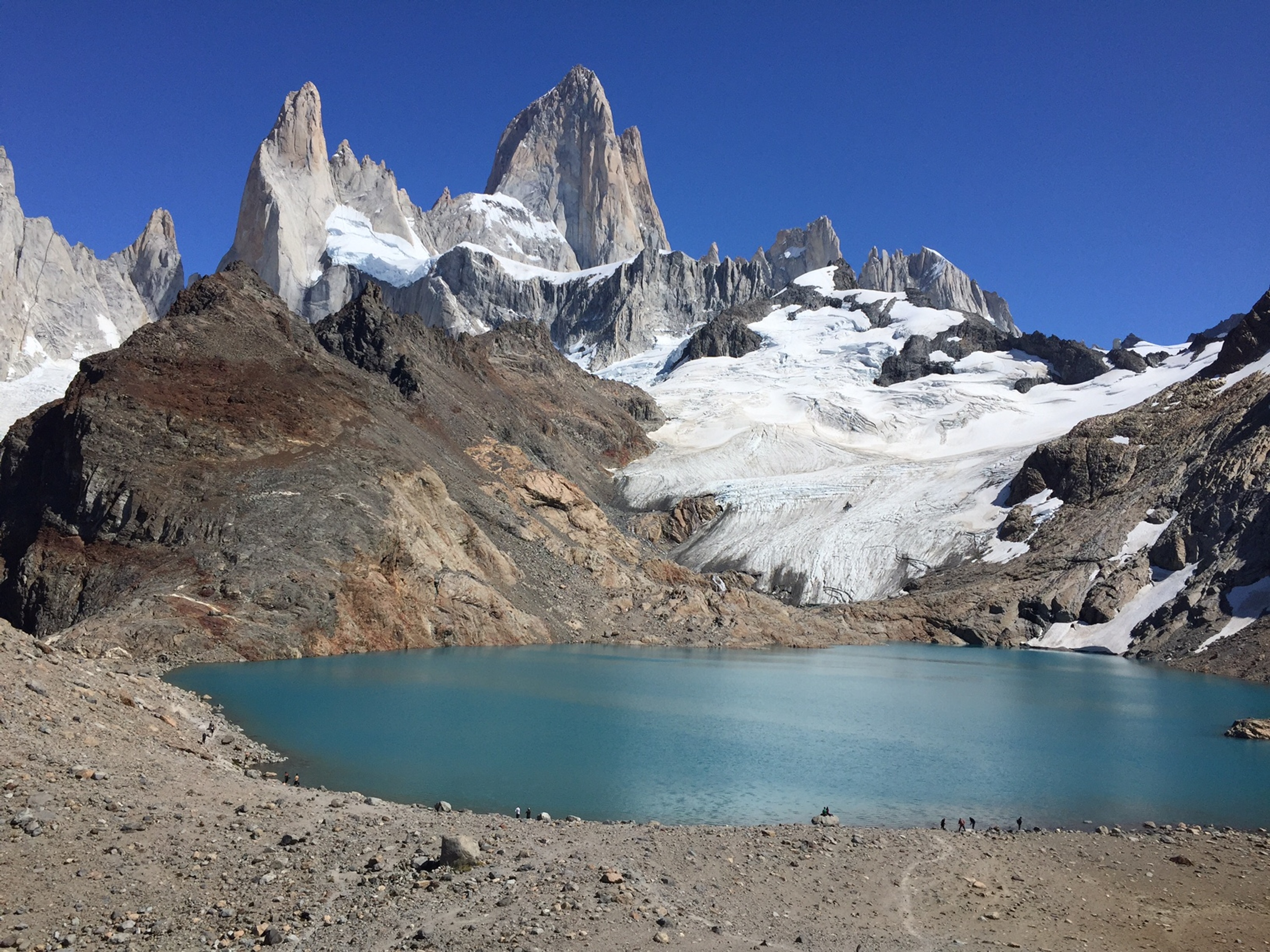 mountains_402Stunning Laguna de los Tres with its turquoise water and Mount Fitz Roy and icefield in the back - famous sight when hiking in El Chaltén, Patagonia, Argentina