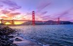 usa_412 Pinks clouds at sunset and long exposure light trails across Golden Gate Bridge Spectacular view of San Francisco , California , USA as the Fog slowly rolls in off the Pacific coast Date: 9/26/2022 Pinks clouds at sunset and long exposure light trails across Golden Gate Bridge Spectacular view of San Francisco , California , USA as the Fog slowly rolls in off the Pacific coast