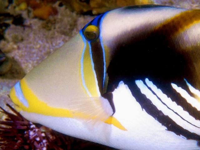 ocean-life-810Group of Picasso triggerfish on a coral reef
