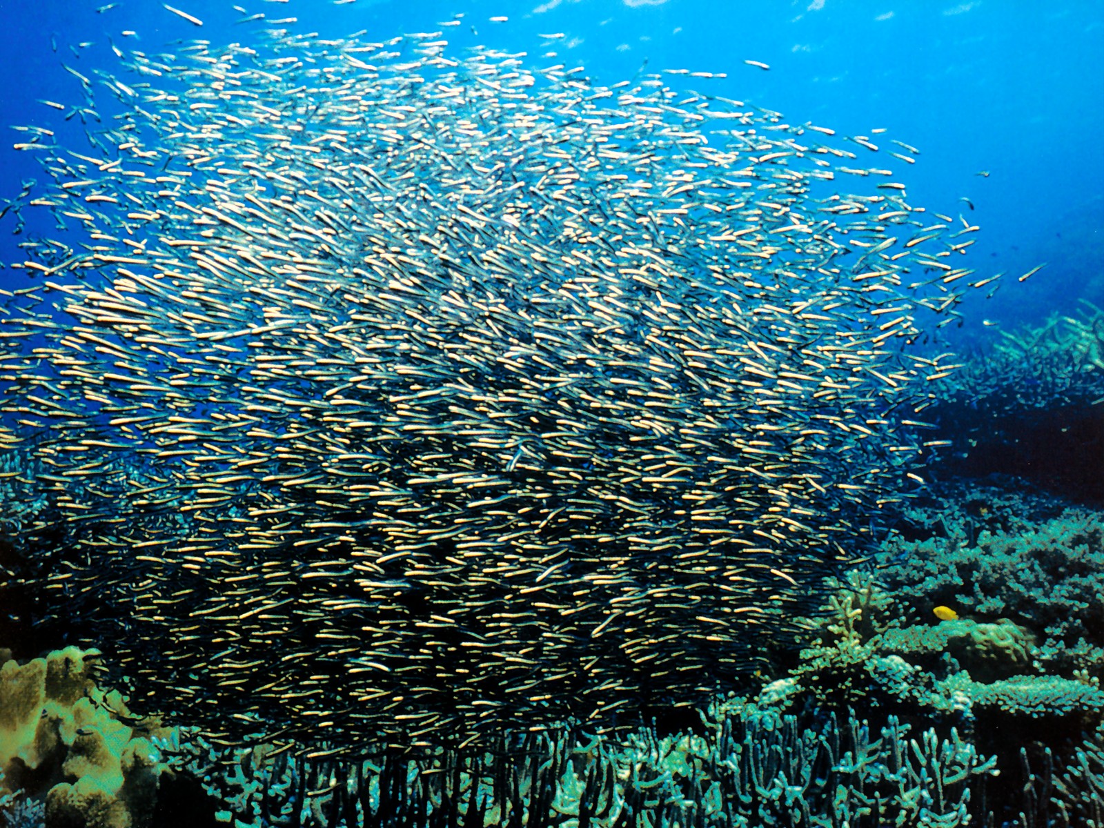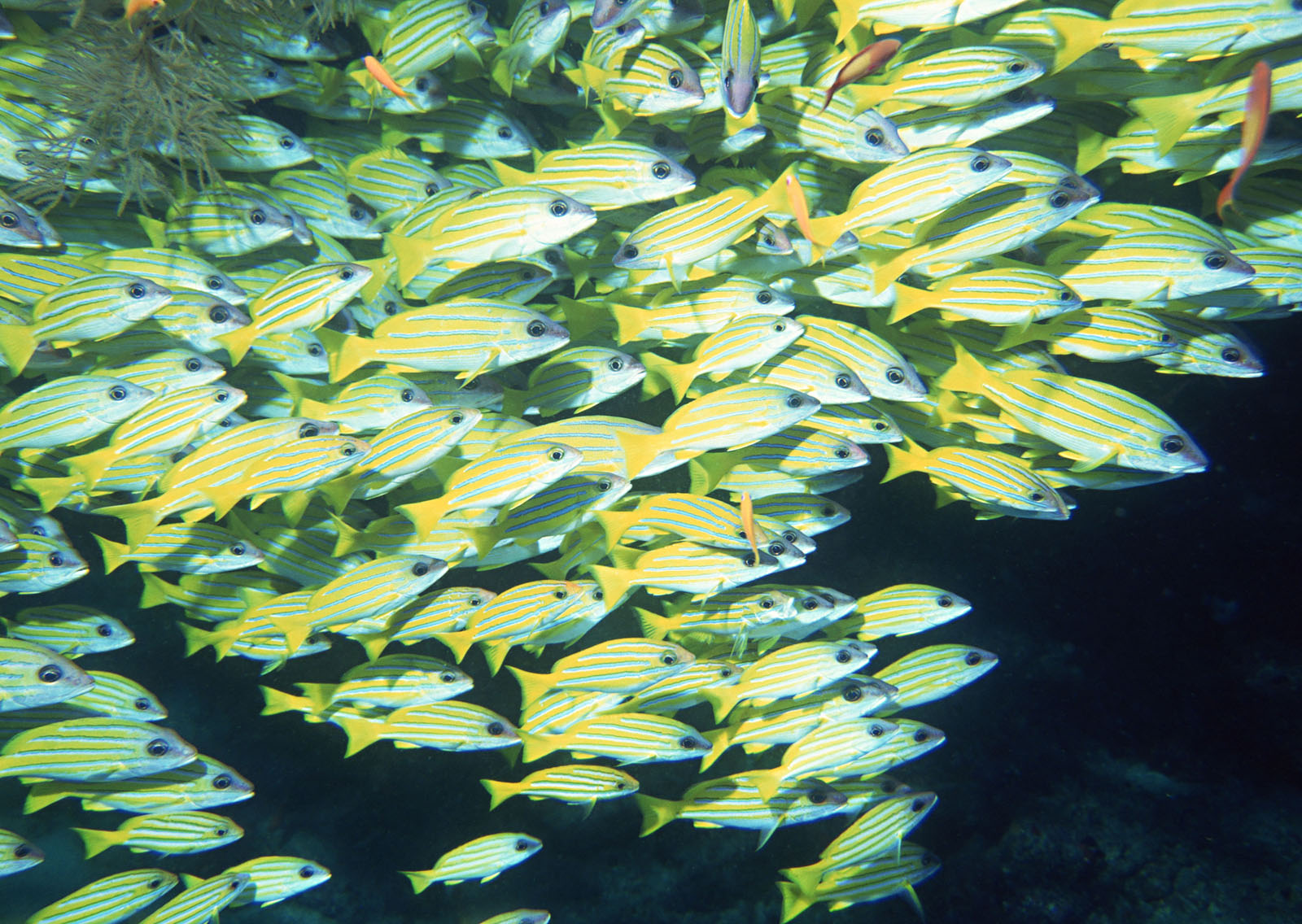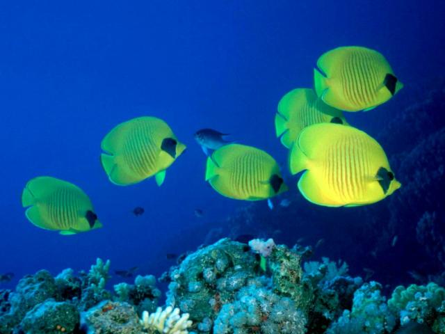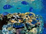 ocean-life-778Underwater coral reef scenery with colorful school of fish.