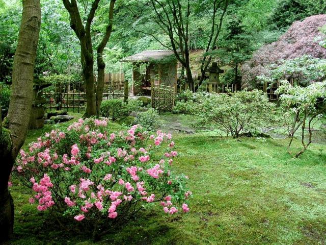 Japanese garden bright autumn colors. Lithia Park, Ashland, Oregon