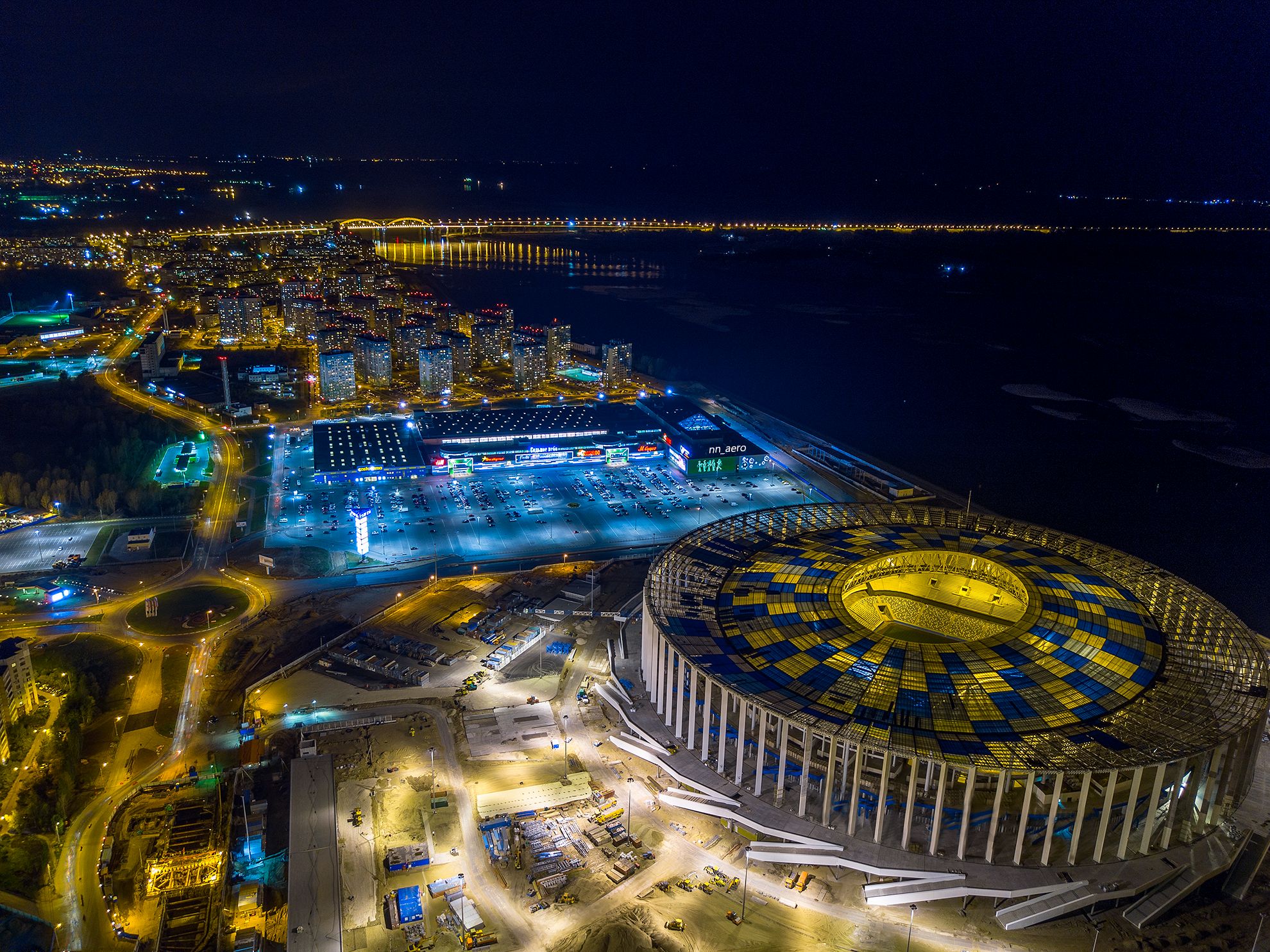 soccer_82 Green soccer stadium, illuminated field, arena in night. Date: 2/6/2024 Green soccer stadium, illuminated field, arena in night.