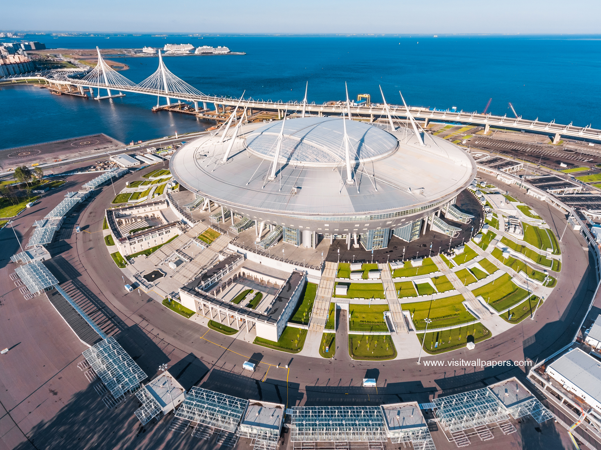 The stadium features a curvilinear postmodernist and neo-futurist design. The appearance of the roof was inspired by the sails of traditional Dhow boats, used by pearl divers from the region, weaving through currents of the Persian Gulf.