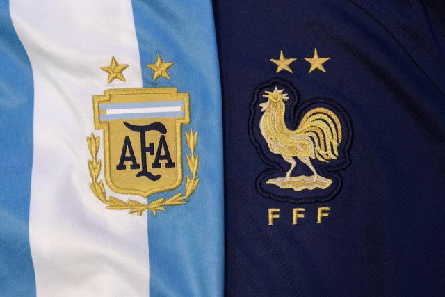 worldcup_2022_78 View of the Logo of Argentina Against France National Football Team Crest. FIFA World Cup 2022 Final: Argentina vs France in the Lusail Iconic Stadium, Lusail, Qatar. Soccer concept. Th Date: 12/20/2022 View of the Logo of Argentina Against France National Football Team Crest