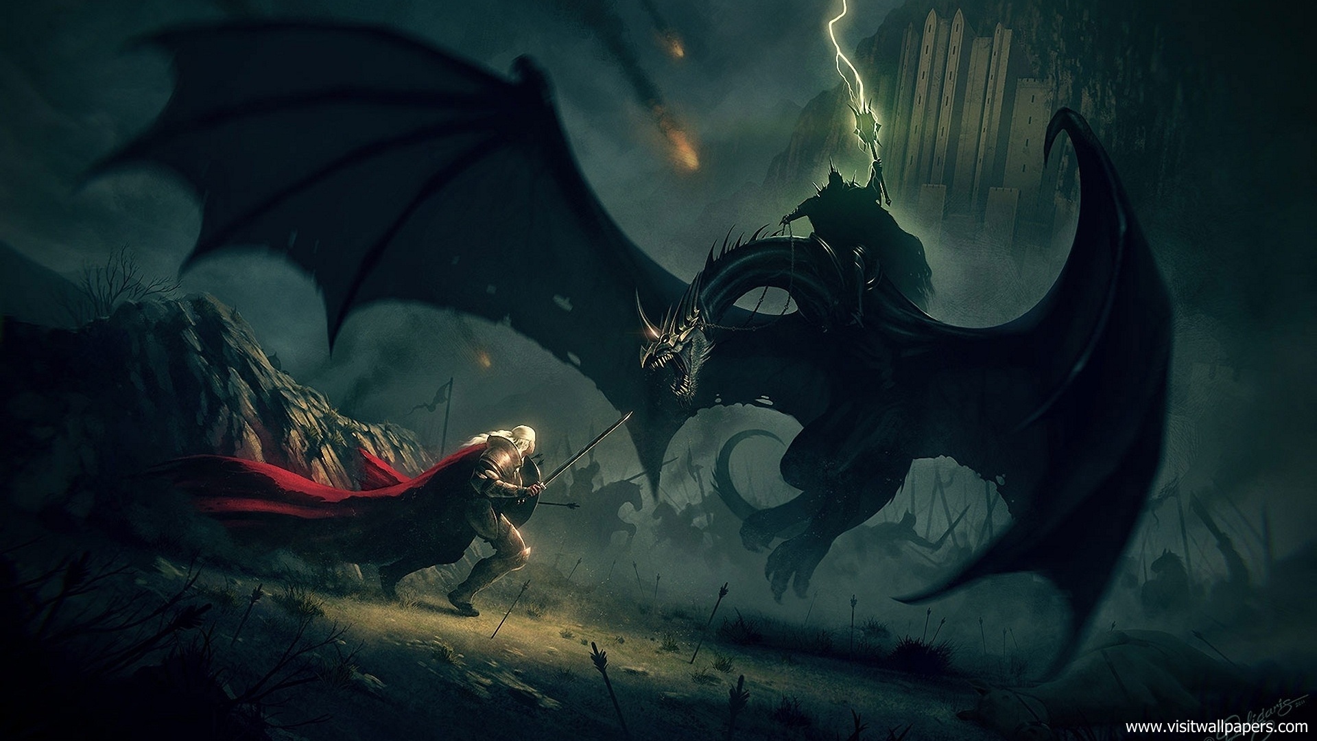 Fantasy_393the dark knight riding the flying dragon in the sunset sky, digital art style, illustration painting