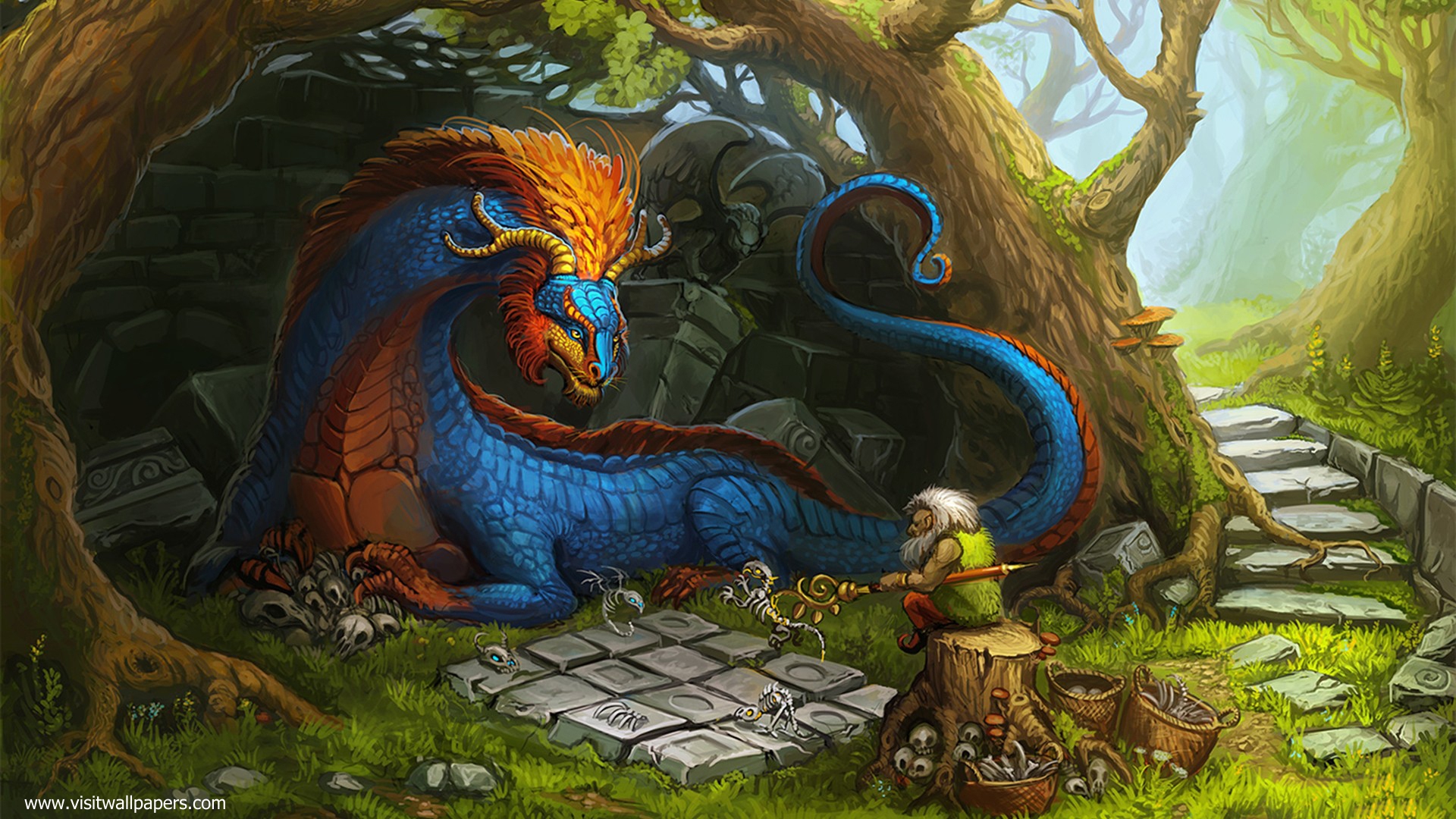 black wizard with a magic wand summoning the dragon, digital art style, illustration painting.