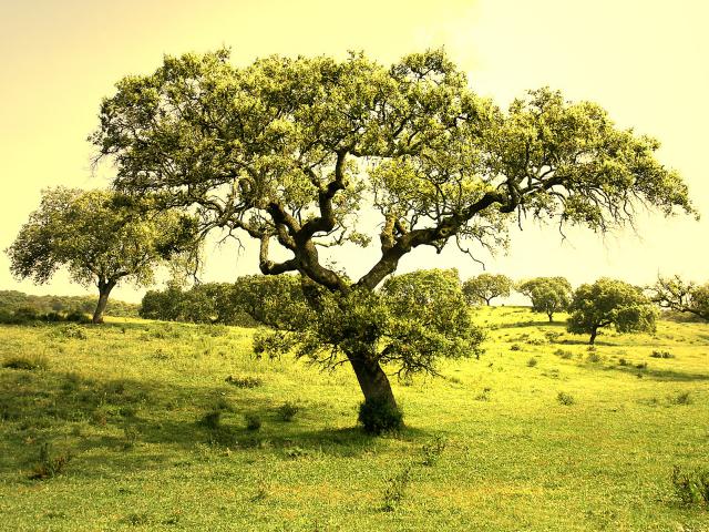 green_075Scenic forest of fresh green deciduous trees framed by leaves, with the sun casting its warm rays through the foliage