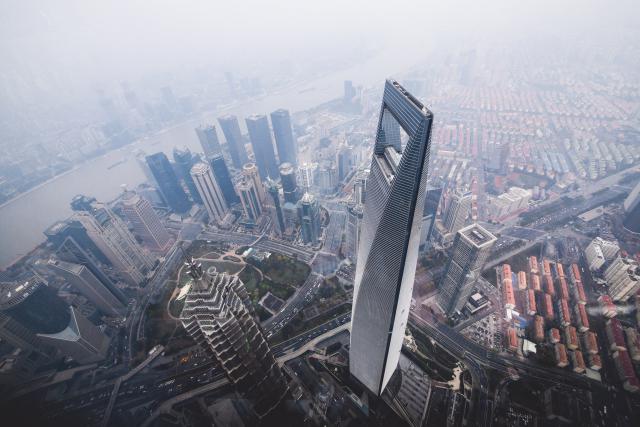 buildings_436CHINA, SHANGHAI - AUGUST 4, 2018. View To Shanghai World Financial Center And Low Rise And Huangpu River on Background. Window Of Shanghai Skyline And Opener. Completed in 2008, this 492m tower in Shanghai is now the 11th tallest in the world. De