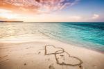 Beaches_159Two hearts drawn on a sandy beach by the sea. Sunset view. Love symbol.