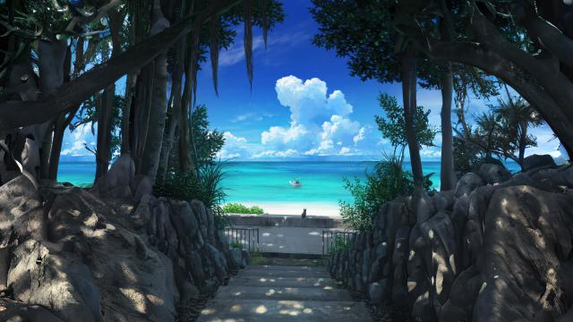 Beaches_188Cat Watching The Nature Beach - Hd Wallpaper