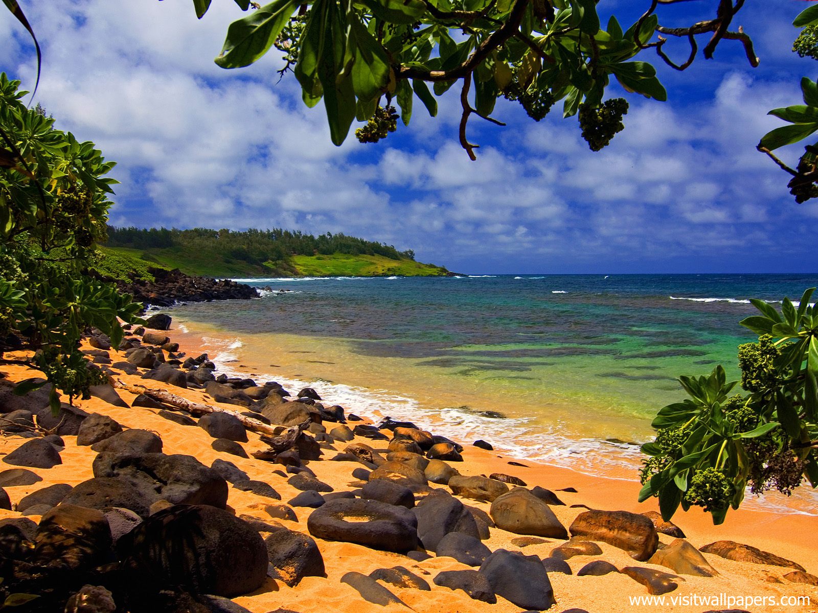 Beaches_109 Palm trees at beautiful tropical beach in Hawaii - HD Wallpaper Date: 2/24/2018 Palm trees at beautiful tropical beach in Hawaii - HD Wallpaper