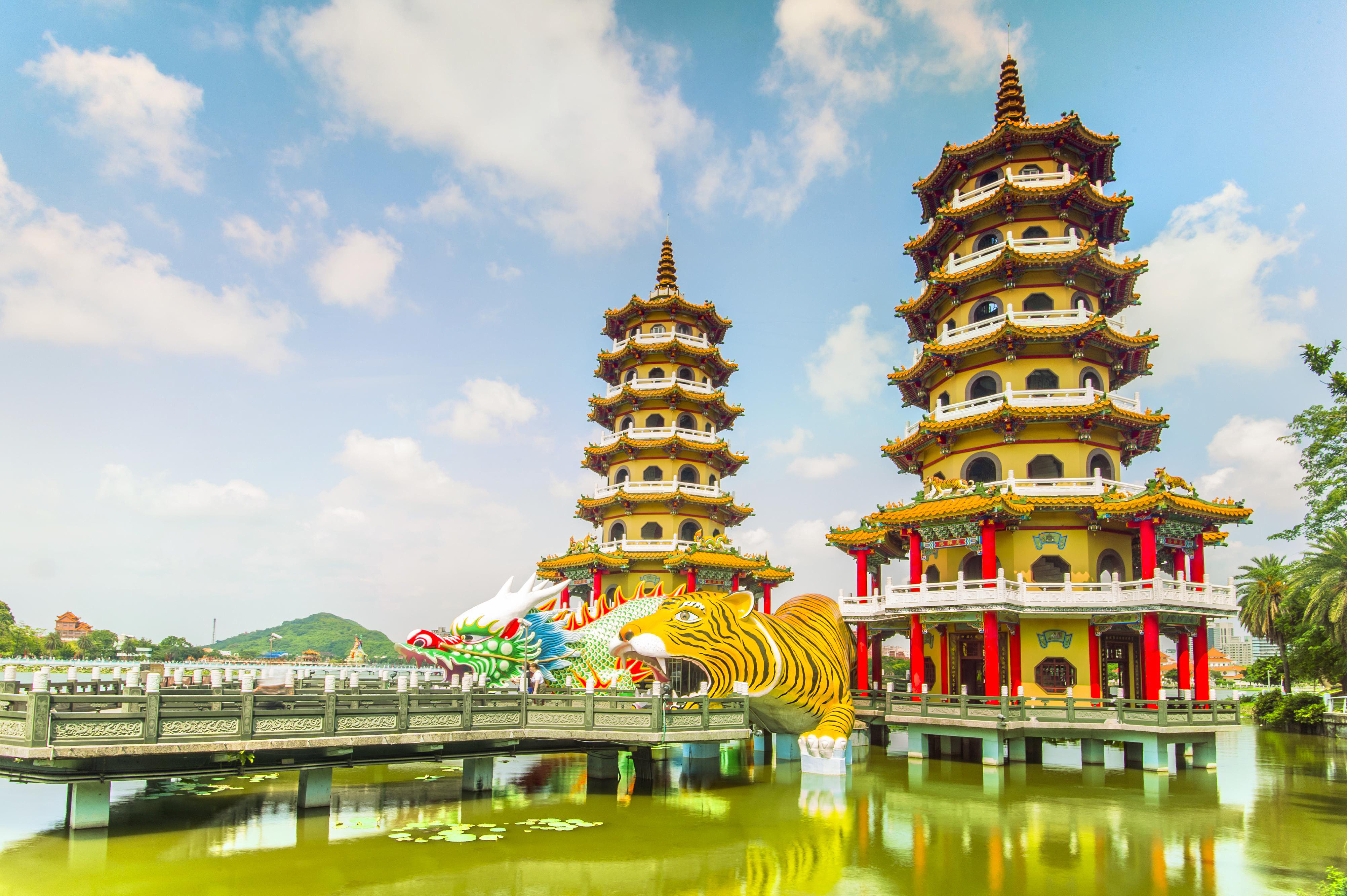 Kaohsiung, Taiwan Dragon and Tiger Pagodas at Lotus Pond.