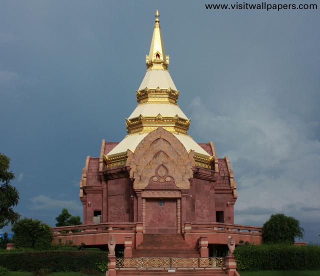 Phra Mahathat Kaen Nakhon,(Thai: พระมหาธาตุแก่นนคร) Kaen Nakhon, 'The Great Buddha's Relics' or 'The Nine Story Stupa Located in Wat Nong Waeng,' is a Thai royal temple of the old town. Wat Nong Waeng is located close to Kaen Nakhon marsh on Klangmuang Road, Muang District. Phra Mahathat Kaen Nakhon was established to celebrate the Golden Jubilee Celebrations of His Majesty Bhumibol Adulyadej's accession to the throne and to celebrate the 200th anniversary of Khon Kaen province's establishment. Its thorough spire, Isaan fishnet shape, Indochina-Dvaravati Era Style, imitated Phra That Kham Kaen. Its base is a square shape of 50 meters on each side and 80 meters in height, where are situated the four-mini-Buddha's relics in each corner sheltered by a seven-head-nāga crystal wall.