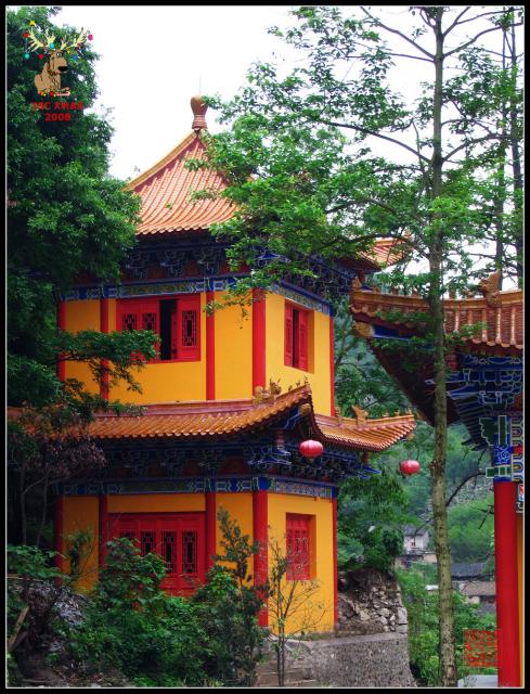 There are paintings inside the temple depicting Ksitigarbha. In the Tiger Tower, there are paintings of twelve Magi and the Jade Emperor's thirty palaces as well as paintings of Confucius. The towers have a double spiral staircase, one each for ascending and descending visitors.