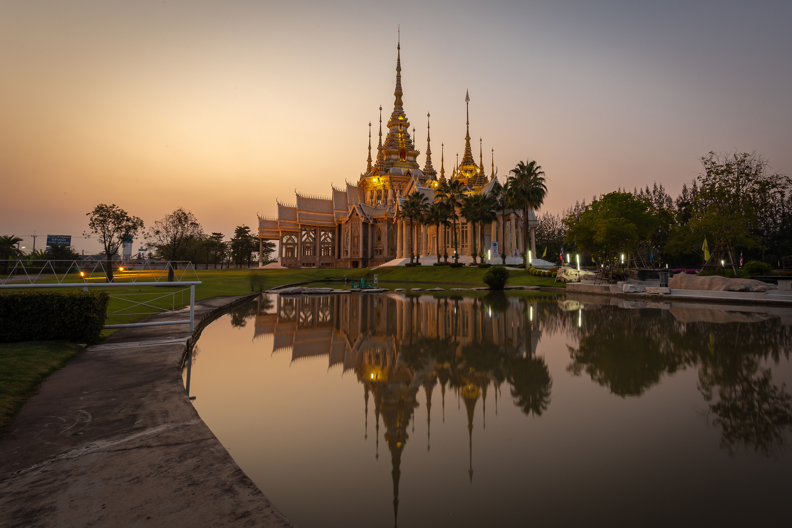 temple_422In Khon kaen twilight time at Bueng Kaen nakhon with Wat Phra Mahathat Kaen Nakhon, travel concept, lifestyle with copy space. Phra Mahathat Kaen Nakhon (Wat Nong Wang) (พระมหาธาตุแก่นนคร) วัดหนองแวง (จังหวัดขอนแก่น) วัดหนองแวง เป็นพระอารามหล