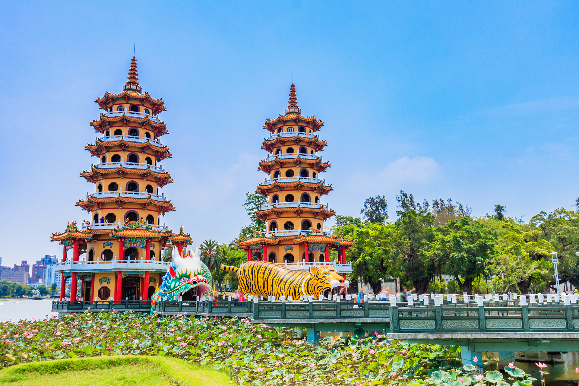 Kaohsiung, Taiwan Dragon and Tiger Pagodas at Lotus Pond.