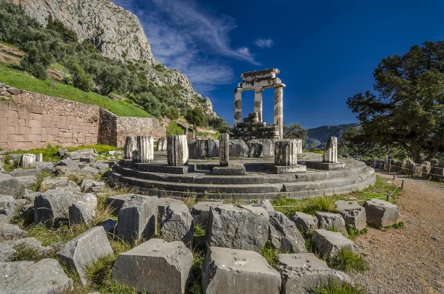 Tholos at the sanctuary of Athena Pronaia, Delphi, Greece.