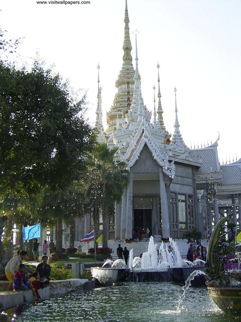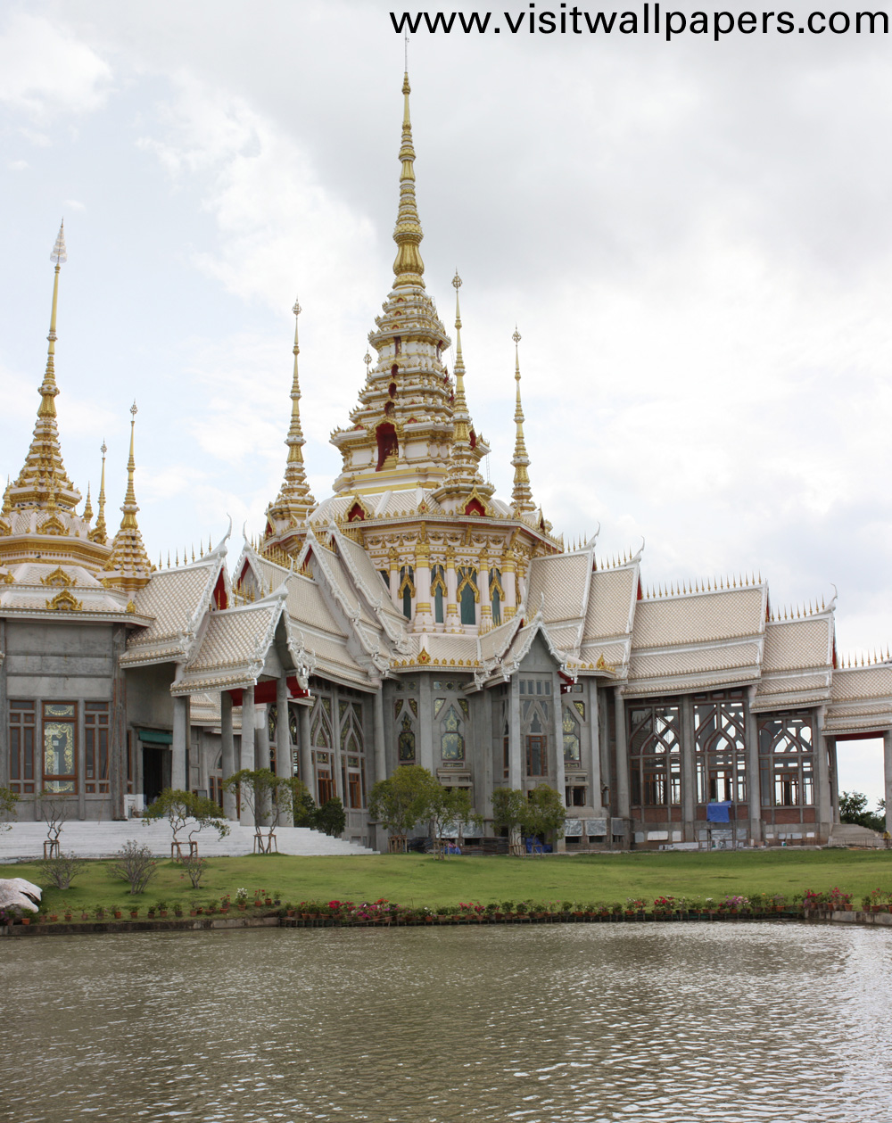 Phra Mahathat Kaen Nakhon,(Thai: พระมหาธาตุแก่นนคร) Kaen Nakhon, 'The Great Buddha's Relics' or 'The Nine Story Stupa Located in Wat Nong Waeng,' is a Thai royal temple of the old town. Wat Nong Waeng is located close to Kaen Nakhon marsh on Klangmuang Road, Muang District. Phra Mahathat Kaen Nakhon was established to celebrate the Golden Jubilee Celebrations of His Majesty Bhumibol Adulyadej's accession to the throne and to celebrate the 200th anniversary of Khon Kaen province's establishment. Its thorough spire, Isaan fishnet shape, Indochina-Dvaravati Era Style, imitated Phra That Kham Kaen. Its base is a square shape of 50 meters on each side and 80 meters in height, where are situated the four-mini-Buddha's relics in each corner sheltered by a seven-head-nāga crystal wall.