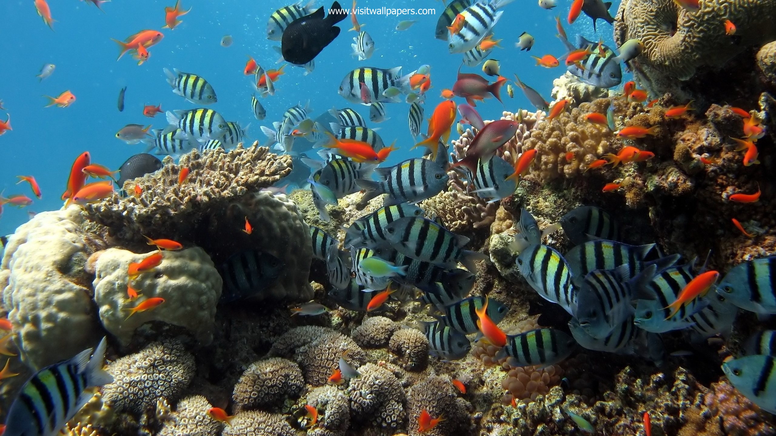 ocean-life-778Underwater coral reef scenery with colorful school of fish.