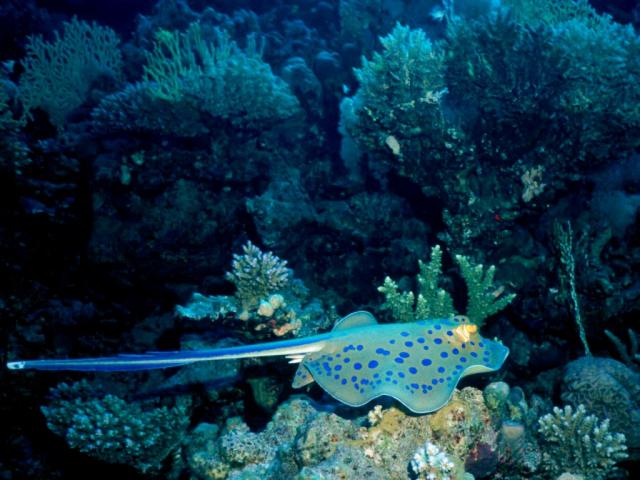 ocean-life-740Manta ray filter feeding above a coral reef in the blue Komodo waters
