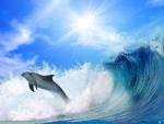 ocean-life-826Two dolphins jumping out of the water at sunrise, creating massive vortex, huge splashes, and ocean spray, the other dolphins swim on the ocean surface at lovina beach, bali island, indonesia.