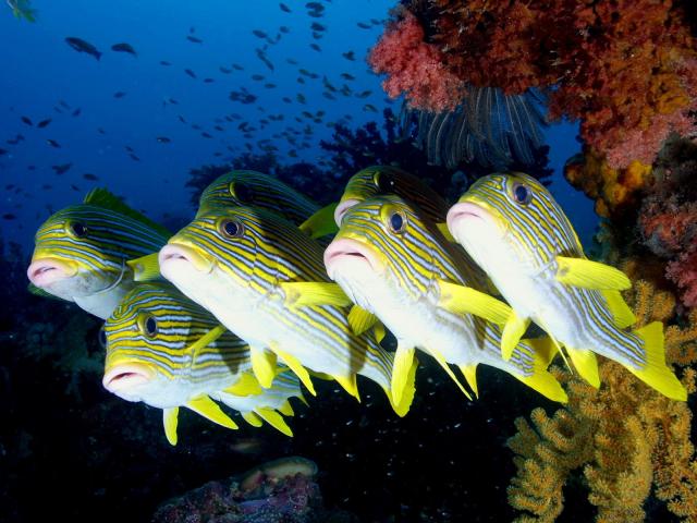 ocean-life-810Group of Picasso triggerfish on a coral reef