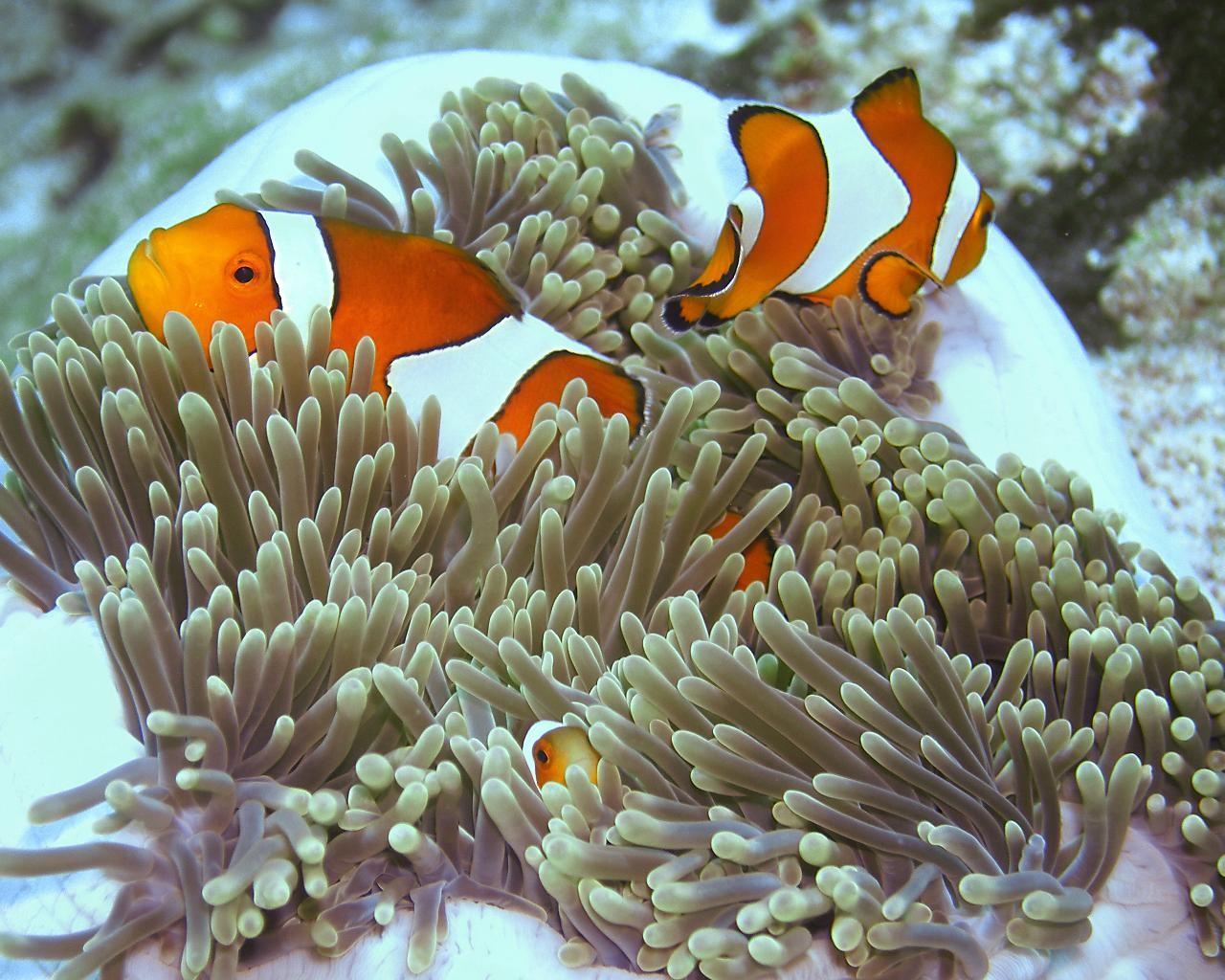 ocean-life-814A Clown Anemonefish sheltering among the tentacles of its sea anemone.