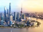 china_805Shanghai Skylines, Shanghai, China. Aerial view of Jin Mao Tower, Shanghai tower, Shanghai World Financial Center and Oriental Pearl Tower