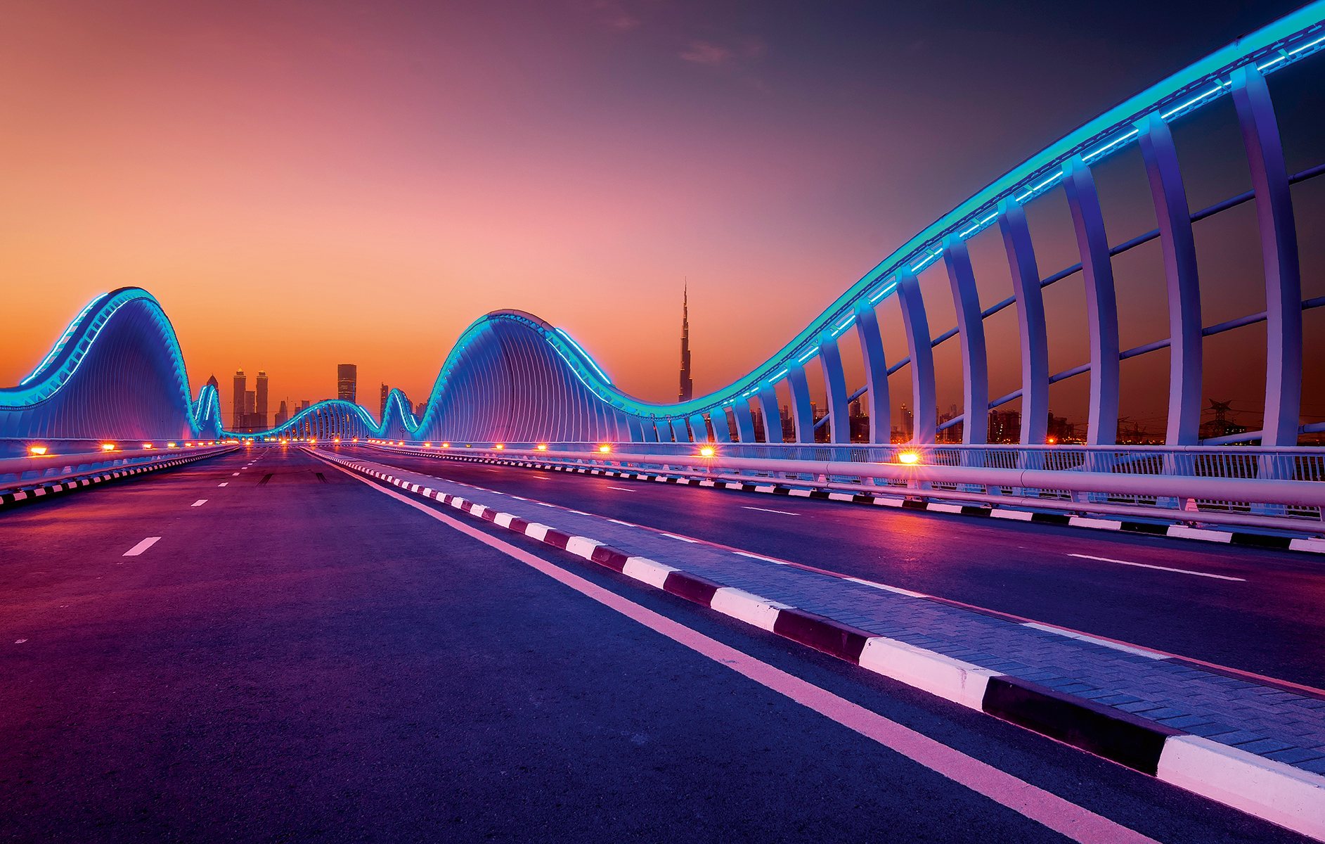 Dubai_075Amazing night dubai VIP bridge with beautiful sunset. Private road to Meydan race course, Dubai, United Arab Emirates