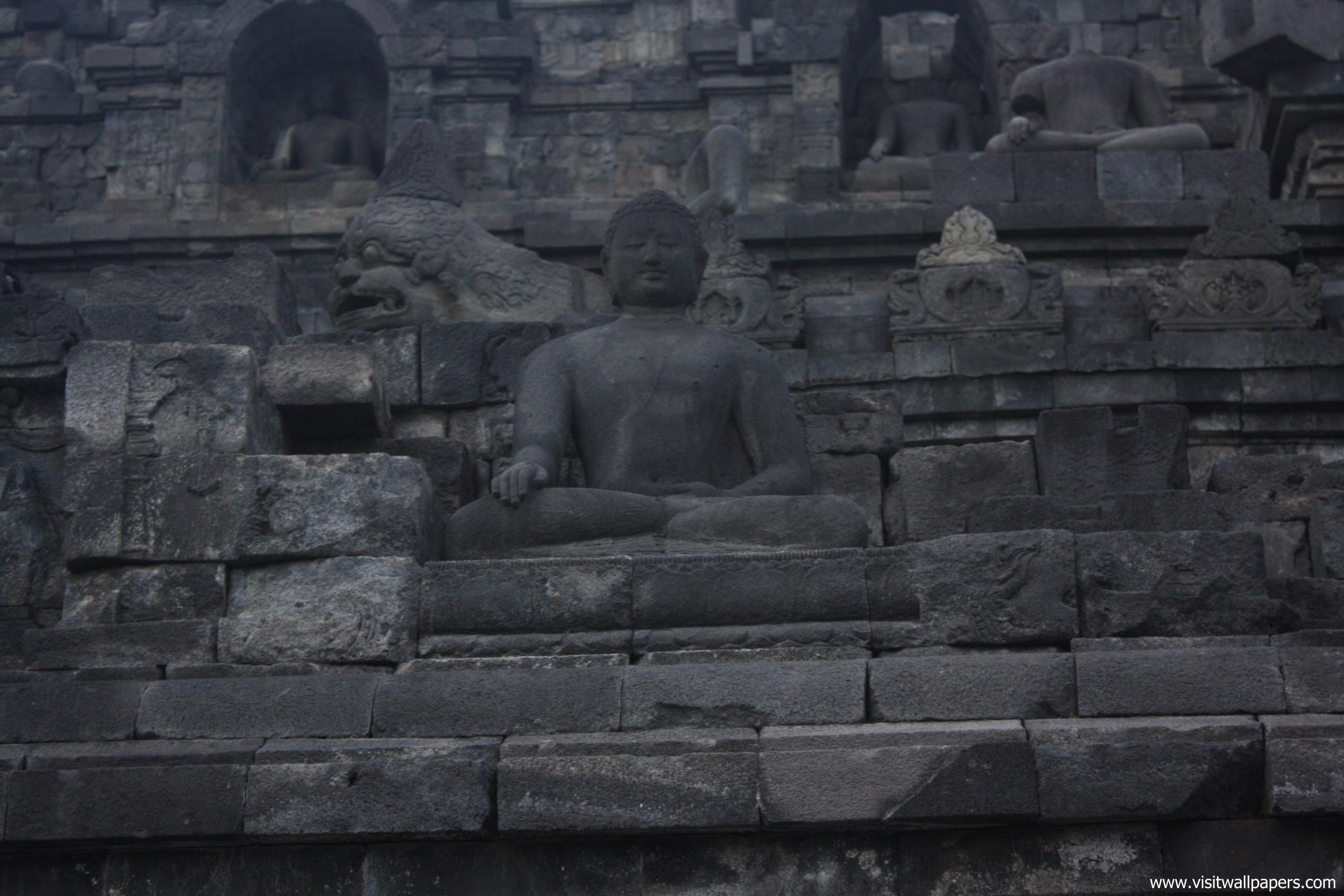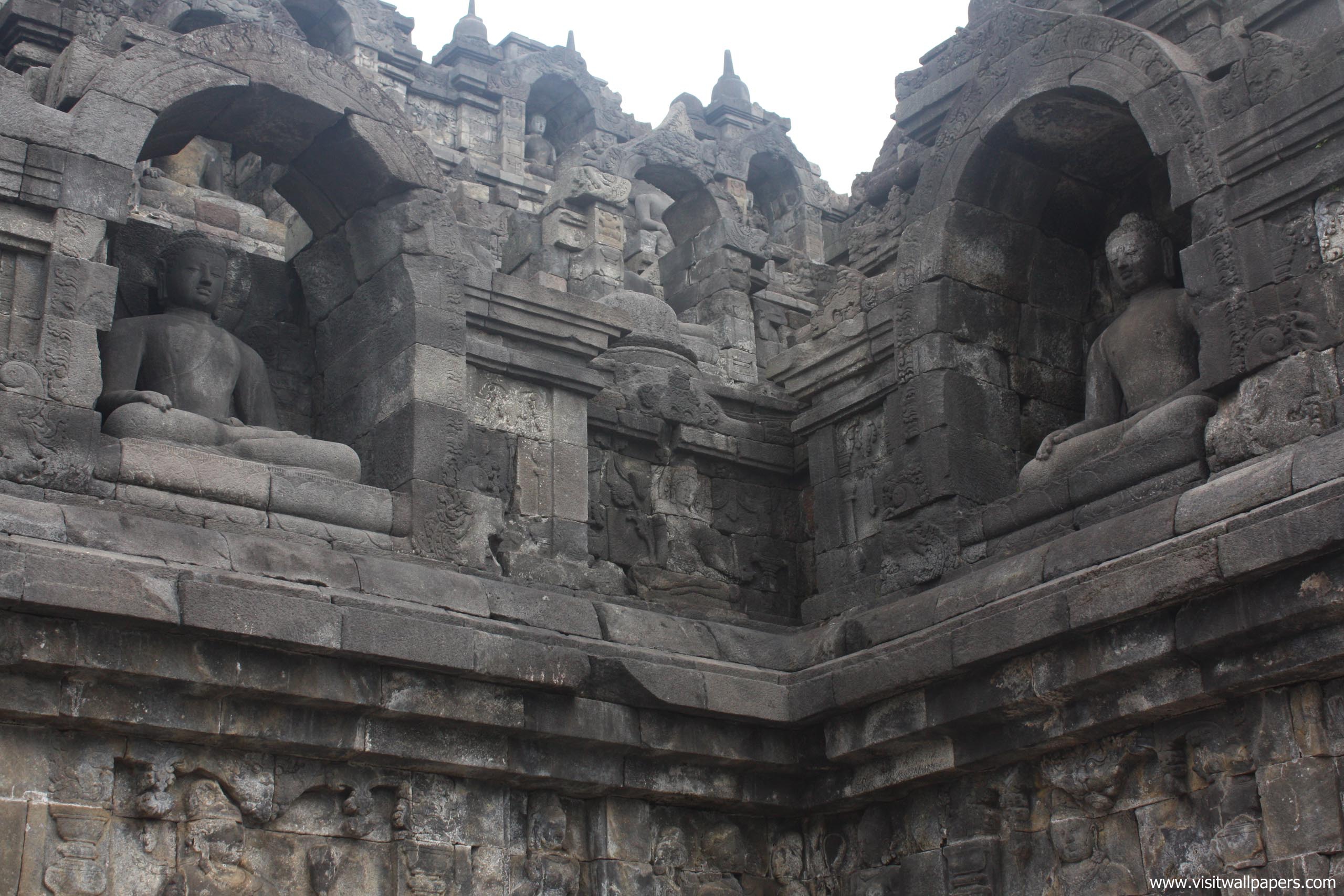Indonesia_091 Stupas of Borobudur - HD Wallpaper Borobudur, or Barabudur, is a 9th-century Mahayana Buddhist Temple in Magelang, Central Java, Indonesia. The monument consists of six square platforms topped by three circular platforms and is decorated with 2,672 re Date: 1/10/2017 Stupas of Borobudur - HD Wallpaper