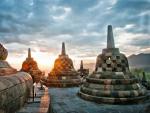 Indonesia_049 Stupas of Borobudur at sunset Wallpaper