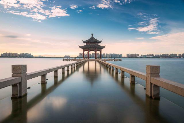 Jixian Pavilion at dusk, West Lake, Hangzhou, China