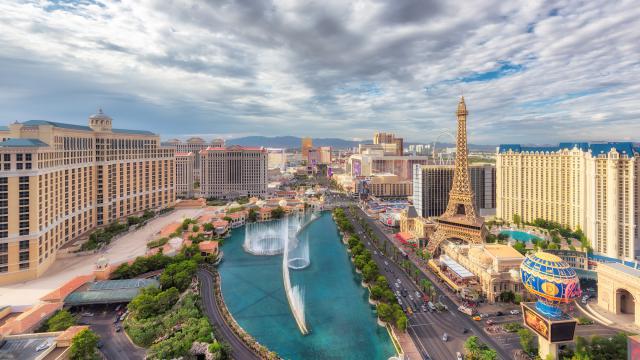 usa_252 Las Vegas strip skyline at sunny day on July 24, 2017 in Las Vegas, Nevada. Caesars Palace, the Flamingo and Paris Hotel and casino are in the background. Date: 9/16/2018 Las Vegas strip skyline at sunny day on July 24, 2017 in Las Vegas, Nevada. Caesars Palace, the Flamingo and Paris Hotel and casino are in the background.