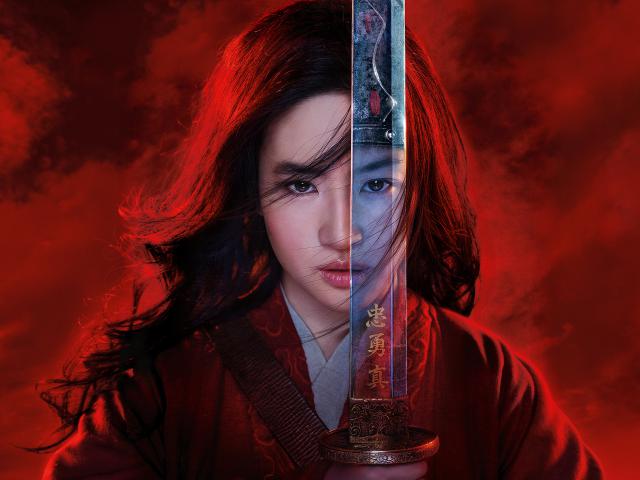 Mulan_19Bangkok, Thailand - July 05, 2020: Close up Beautiful Standee of Action Movie called Mulan (Chinese Heroine Perform by Liu Yifei) displays at the theater to promote the movie. Mulan is a 2020 American historical war drama film directed by Niki Caro,