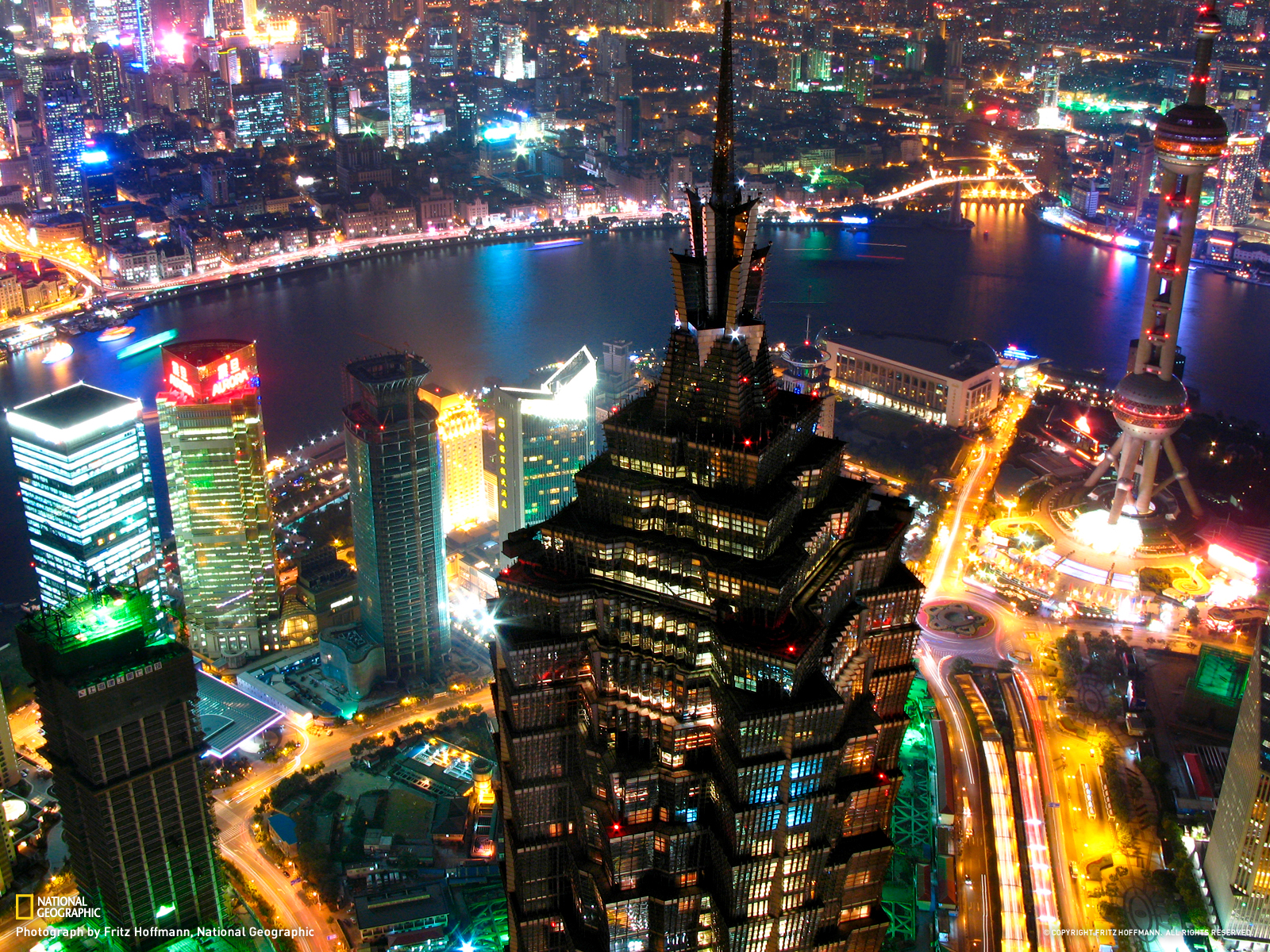 china_805Shanghai Skylines, Shanghai, China. Aerial view of Jin Mao Tower, Shanghai tower, Shanghai World Financial Center and Oriental Pearl Tower