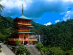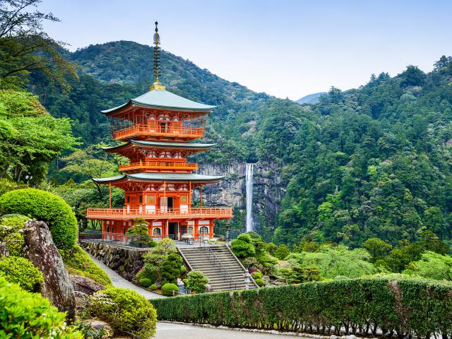 Japan_150 The pagoda of Seigantoji and Nachi no Taki waterfall, in Nacho, Wakayama Prefecture, Japan Date: 6/24/2019 The pagoda of Seigantoji and Nachi no Taki waterfall, in Nacho, Wakayama Prefecture, Japan