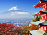 Japan_205 Mount Fuji with fall colors in Japan. Date: 4/28/2021 Mount Fuji with fall colors in Japan.