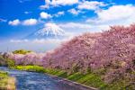Japan_231 Cherry Blossoms, Urui River And Mount Fuji, Japan. Date: 10/30/2023 Cherry Blossoms, Urui River And Mount Fuji, Japan.