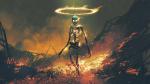 Fantasy_390horror character of demon skeleton with fire flames in hellfire, digital art style, illustration painting
