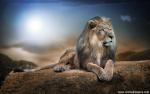 Lion_66A male lion is sitting on the rock , looking for his area during the sunrise.