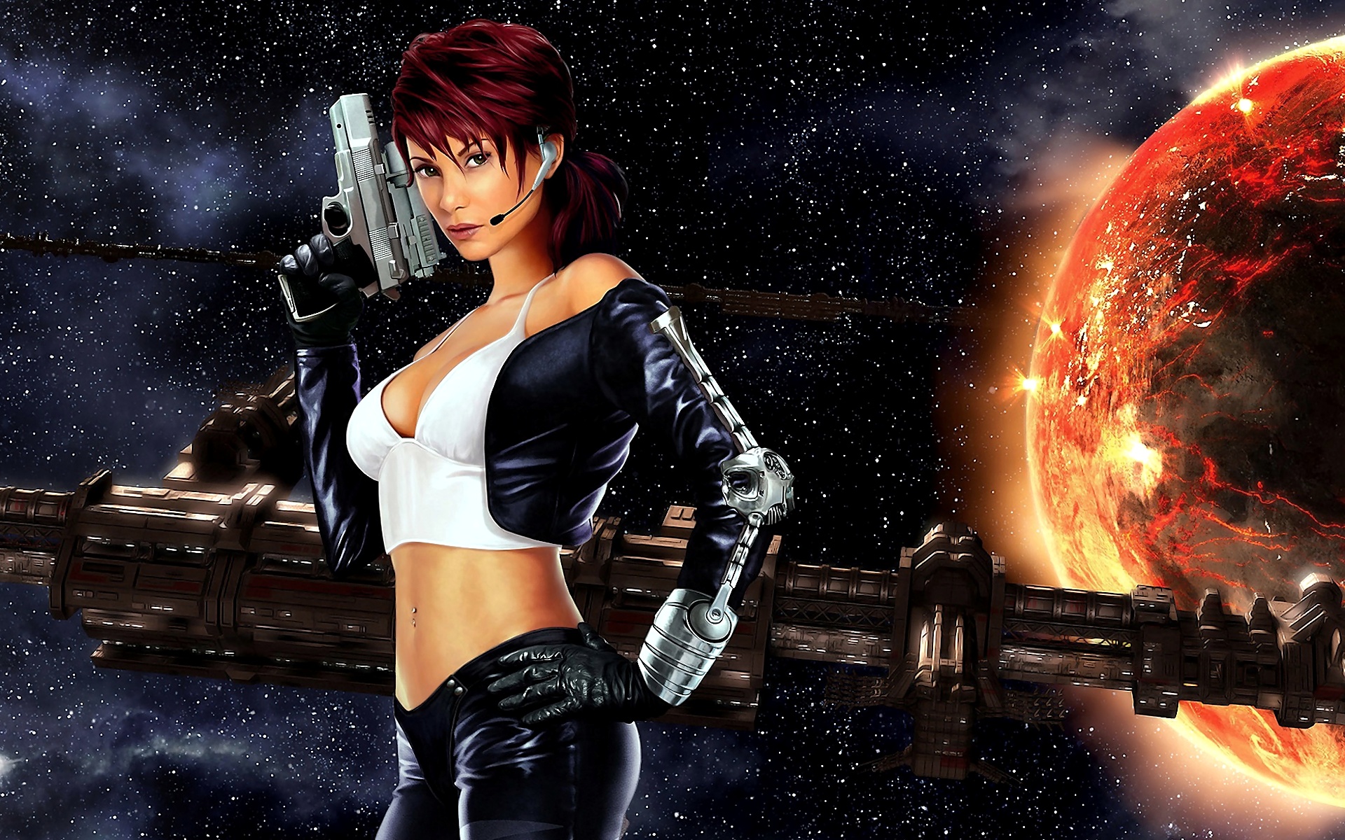 Fantasy_386Cyber cool girl with gun - hd Wallpaper