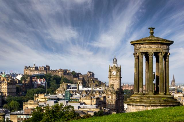 Beautiful view of Stewart Monument, Calton Hill, Edinburgh, Scotland