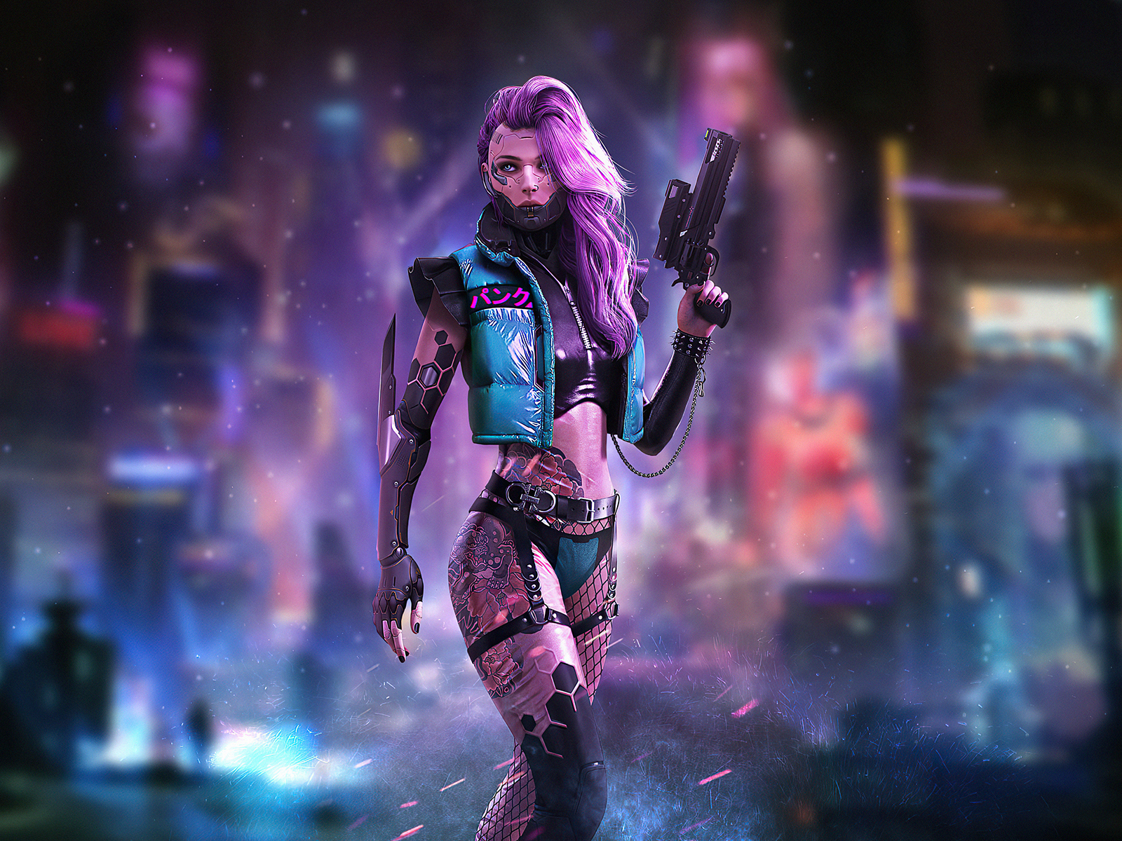 GameScenes_249Cyberpunk Tatto Girl With Gun Cyberpunk 2077 is a role-playing video game developed and published by CD Projekt, releasing for Microsoft Windows, PlayStation 4, and Xbox One on 16 April 2020. Adapted from the 1988 tabletop game Cyberpunk 2020, it is se
