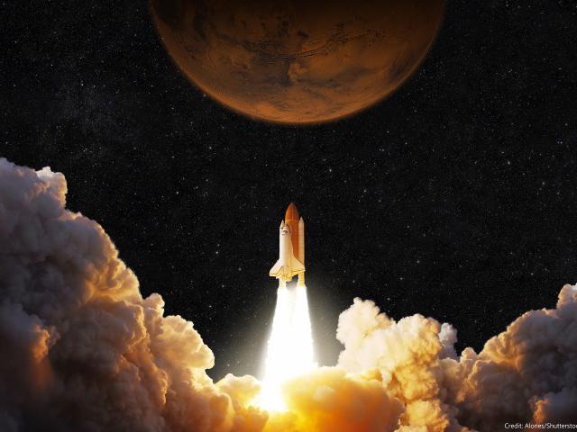 nasa_216Heavy Starship take off mission from Mars planet. Elements of this image furnished by NASA.
