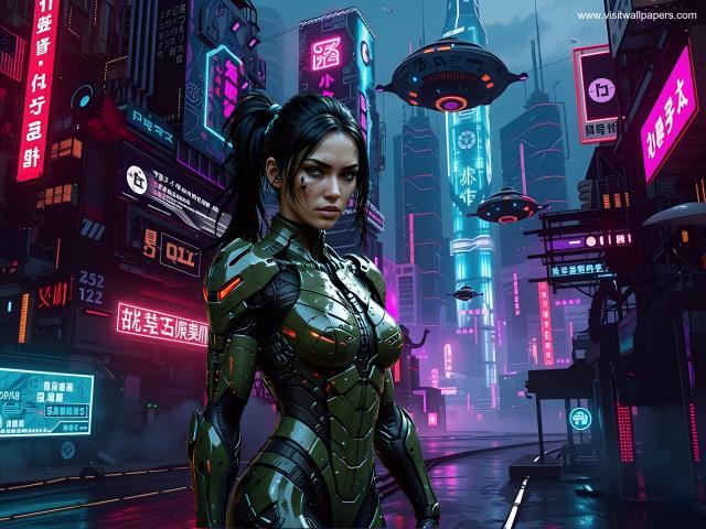 sci-fi_163Futuristic girl on cityscape of asian cyberpunk city at night.