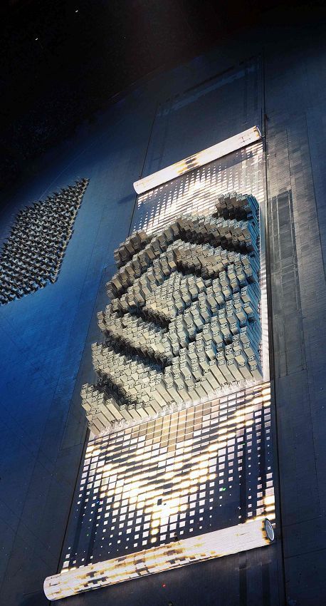 The giant scroll was then moved aside to show a fluid array of 897 movable type blocks that formed three variations of the character 和 (harmony)