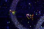 The Chinese singer Liu Huan and British singer Sarah Brightman, standing on the central platform, sang the 2008 Olympic theme song: You and Me.