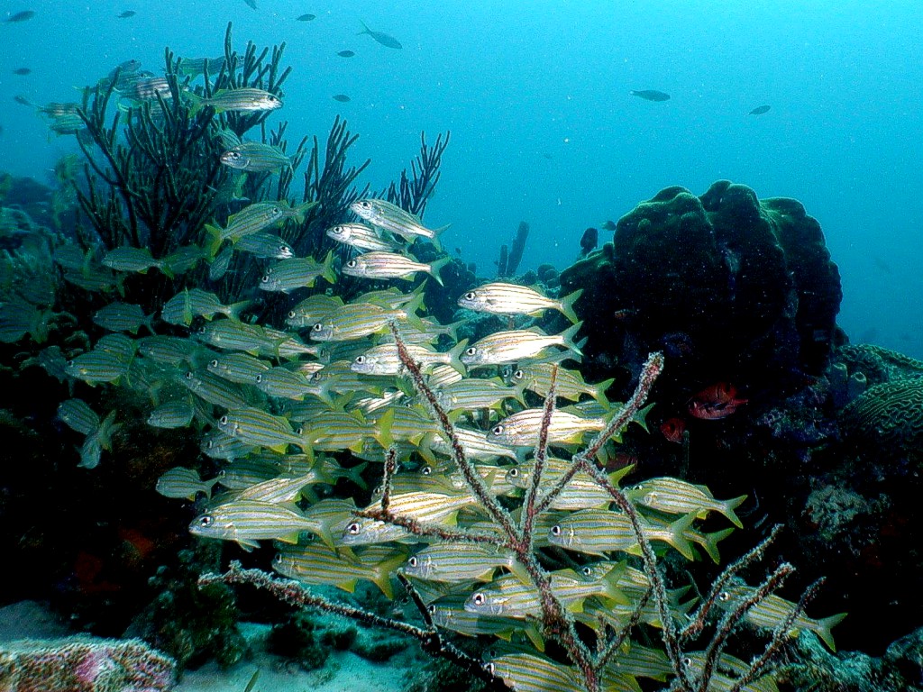 ocean-life-778Underwater coral reef scenery with colorful school of fish.
