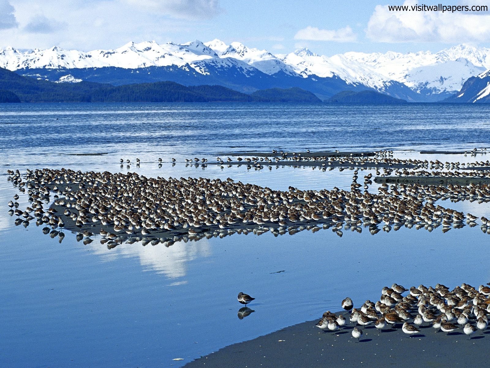 Birds_302Beautiful winter landscape with swans on the lake, white trees